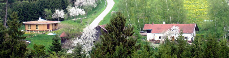 Das neue Rundhaus ist der Mittelpunkt des Anwesens, organisch eingebettet in das Gefüge von Wald, Wiesen, Gärten, Steinmauern, Wegen und Pfaden, die zum Verweilen, Meditieren und Beobachten einladen. Das ganze Gelände ist voller Überraschungen. Die geistig-seelischen Ebenen der Natur sind hier leicht spürbar und die elementare Welt sehr präsent. In verschiedenen Gestaltungen (Steinsetzungen, Skulpturen, Landart) finden sie einen sichtbaren Ausdruck.